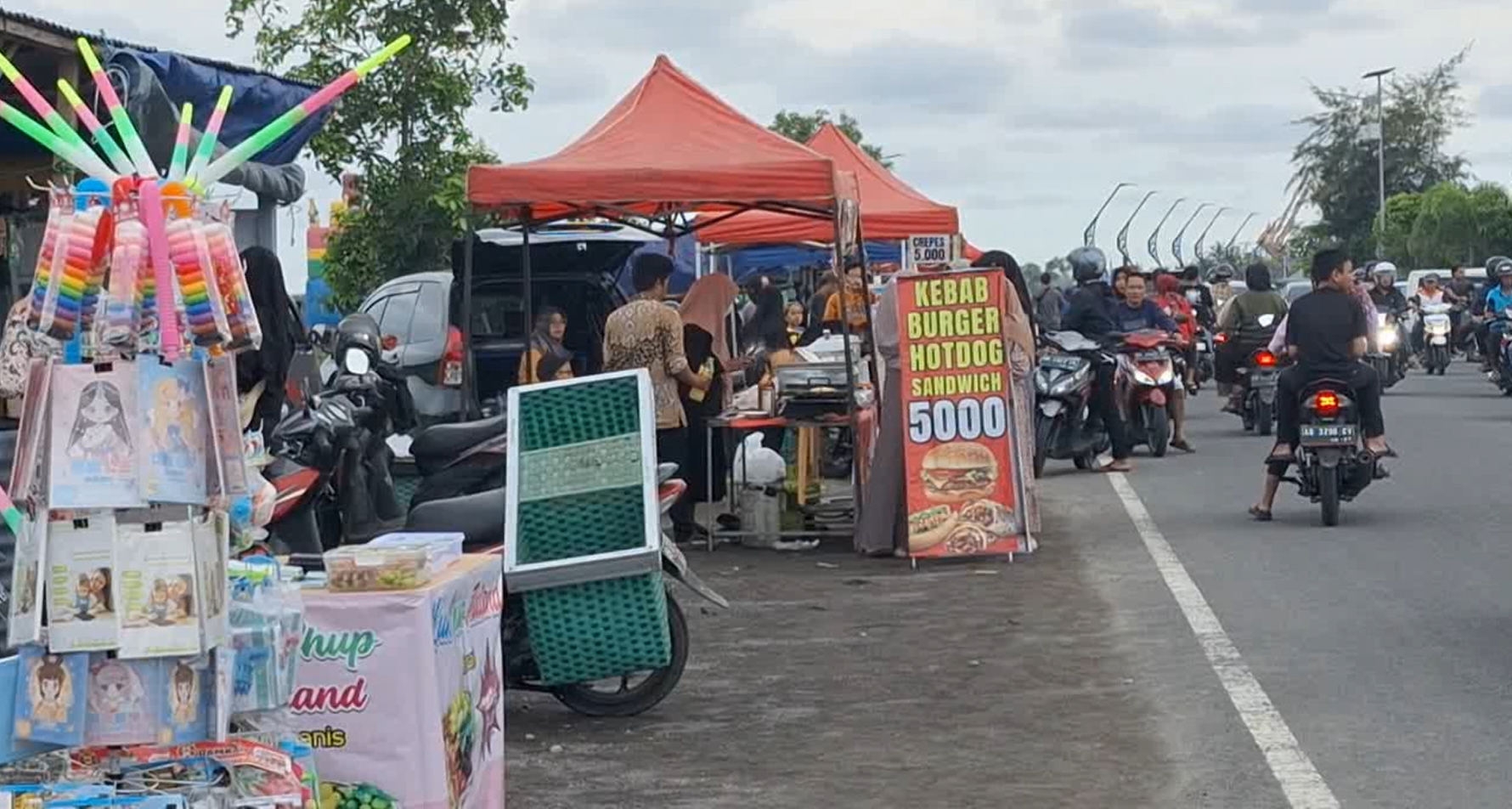 Jembatan Baru JJLS Pandansimo Bak Pasar Kaget, Ramai Pedagang saat Akhir Pekan