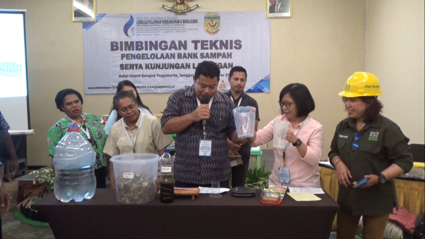 Selama tiga hari kegiatan berlangsung, puluhan peserta yang terdiri atas perwakilan kelurahan dan Dinas Lingkungan Hidup Kabupaten Mimika mengikuti bimtek di salah satu hotel di Kota Yogyakarta. Mereka mendapatkan berbagai materi mengenai teknik pemilahan sampah rumah tangga, pengolahan sampah organik dapur menjadi media pakan dan media tanam, serta pembuatan produk turunan bernilai ekonomi, seperti kompos, eco-enzyme, dan kerajinan tangan dari bahan sampah.