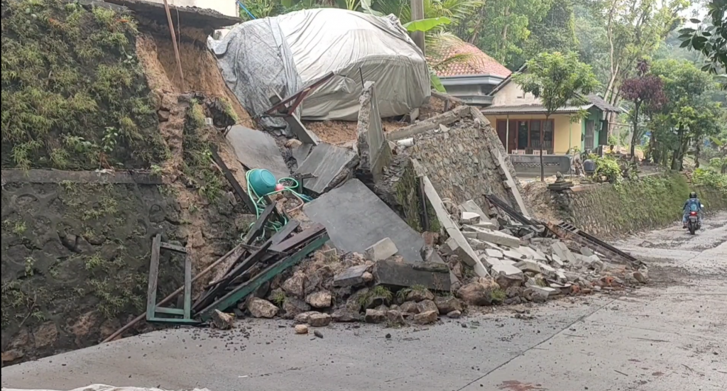 “Talud ini sudah beberapa kali retak sejak proyek jalan di bawah rumah saya dimulai. Setelah hujan deras kemarin, akhirnya runtuh,” ujar Yusoko, pemilik rumah yang terdampak.