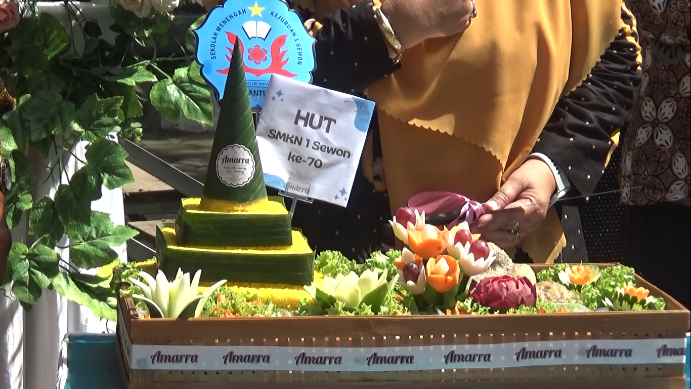 Perayaan dimulai dengan penampilan tari dari siswa yang tergabung dalam ekstrakurikuler seni tari. Acara dilanjutkan dengan prosesi pemotongan tumpeng oleh Kepala SMKN 1 Sewon, Sri Hartati, bersama sejumlah pejabat dari Dinas Pendidikan, menandai rasa syukur atas perjalanan panjang sekolah yang telah berdiri selama tujuh dekade.