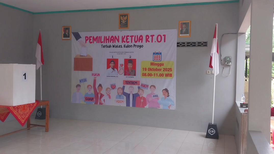 Kulon Progo – Warga Dusun Terbah, RT 01 RW 03, Kalurahan Wates, Kabupaten Kulon Progo, menggelar proses pemilihan Ketua RT secara langsung, layaknya pemilihan umum legislatif maupun pemilihan presiden.