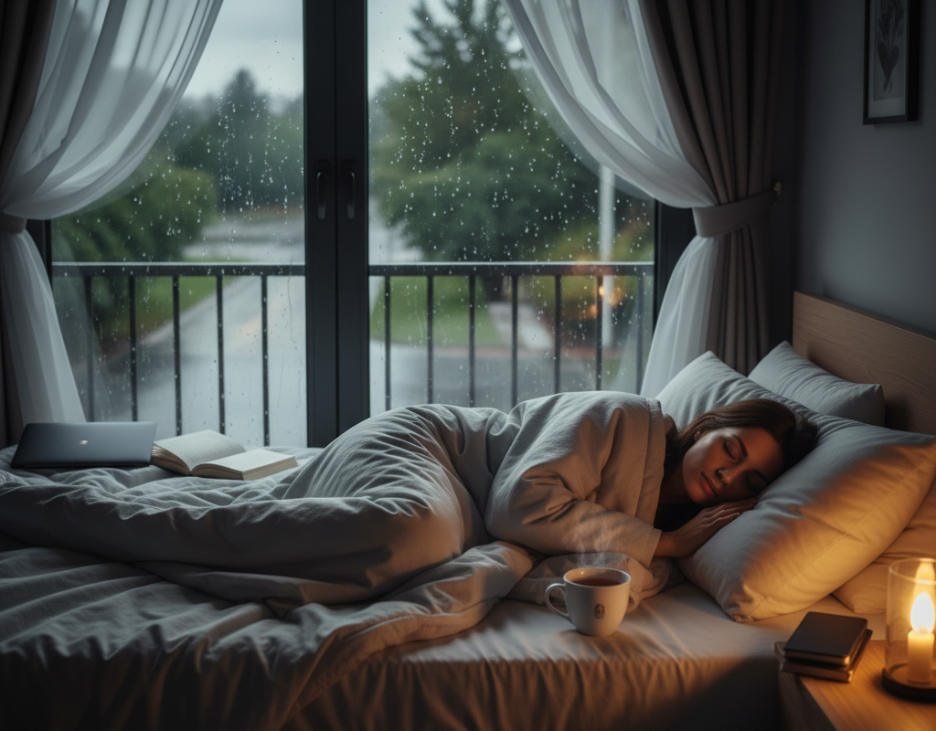 Selain itu, ketika hujan turun, aktivitas luar ruangan biasanya berkurang. Tidak ada lagi suara kendaraan yang ramai, orang-orang berlalu lalang, atau aktivitas konstruksi. Lingkungan yang lebih tenang ini mendukung tubuh untuk beristirahat.