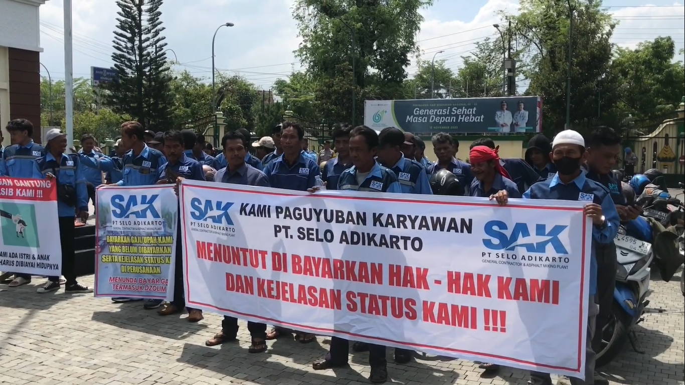 Kulon Progo – Sebanyak 125 karyawan PT SAK kembali mendatangi Kantor Bupati Kulon Progo untuk menuntut pembayaran gaji yang belum mereka terima sejak Juni 2025. Para pekerja mengaku kecewa karena perusahaan dinilai tidak transparan dan tidak memberikan kepastian waktu pelunasan hak mereka.