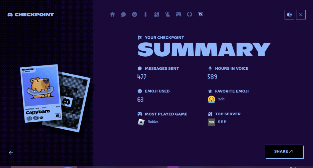 Melalui Discord Checkpoint platform komunikasi ini mengajak penggunanya mengenang berbagai interaksi yang dilakukan selama setahun terakhir. Tidak hanya menghadirkan data, fitur ini dirancang untuk menghadirkan pengalaman reflektif dan personal, sejalan dengan tren rekap tahunan yang sebelumnya populer melalui Spotify Wrapped.