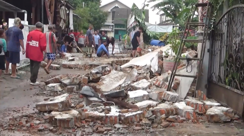 Di Kampung Sedahromo, tembok bekas gudang sepanjang sekitar 20 meter roboh dan menutupi jalan, sempat membuat warga sekitar panik. Setelah hujan reda, masyarakat langsung membersihkan puing-puing bangunan yang berserakan.