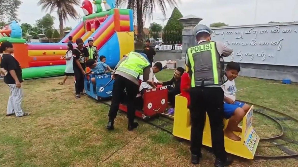 SRAGEN-Menyambut liburan Natal dan Tahun Baru, Polres Sragen telah mendirikan pos pengamanan terintegrasi di beberapa lokasi. Namun, salah satu pos pengamanan terintegrasi terlihat berbeda karena menawarkan wahana permainan untuk anak-anak secara mendadak dan tanpa biaya.