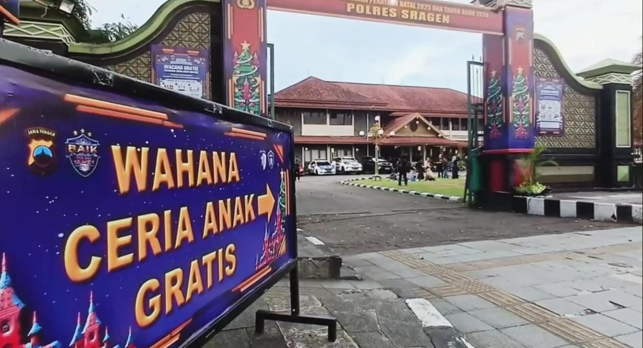 Polres Sragen mengubah pos pengamanan Natal dan Tahun Baru di halaman kompleks Pemkab lama menjadi area bermain bagi anak-anak. Langkah ini diambil bukan tanpa alasan, Polres Sragen menyediakan berbagai permainan agar anak-anak dapat bersenang-senang saat memasuki masa liburan sekolah.
