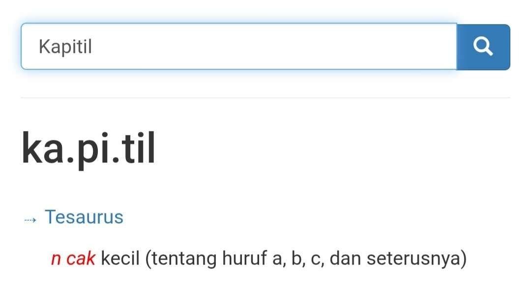 Yang menarik, penggunaan kata ‘kapitil’ hanya bisa digunakan bersamaan dengan ‘kapital’ jika secara khusus membahas huruf-huruf. Hal ini karena kata ‘kapital’ memiliki makna lain dalam KBBI, biasanya digunakan dalam konteks ekonomi.